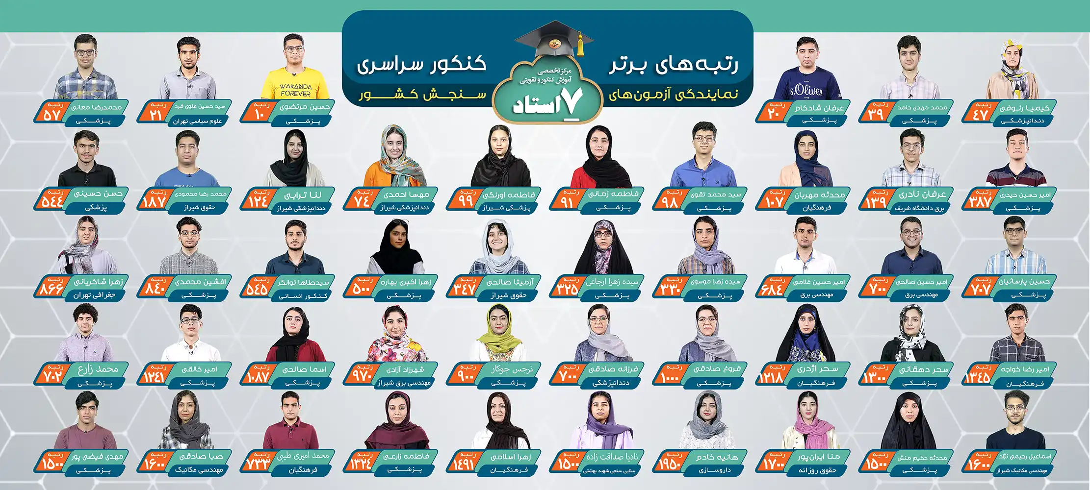 مرکز تخصصی کنکور و تقویتی با بیش از 28 سال سابقه درخشان در آموزش، مشاوره تحصیلی و برگزاری آزمونهای کشوری. موسسه هفت استاد ، با پنج شعبه فعال در شهر شیراز، به عنوان نماینده رسمی آزمونهای سنجش کشور و مجری آزمونهای کلان پیشرفت تحصیلی، همواره در خدمت دانشآموزان از ابتدایی تا کنکور است.