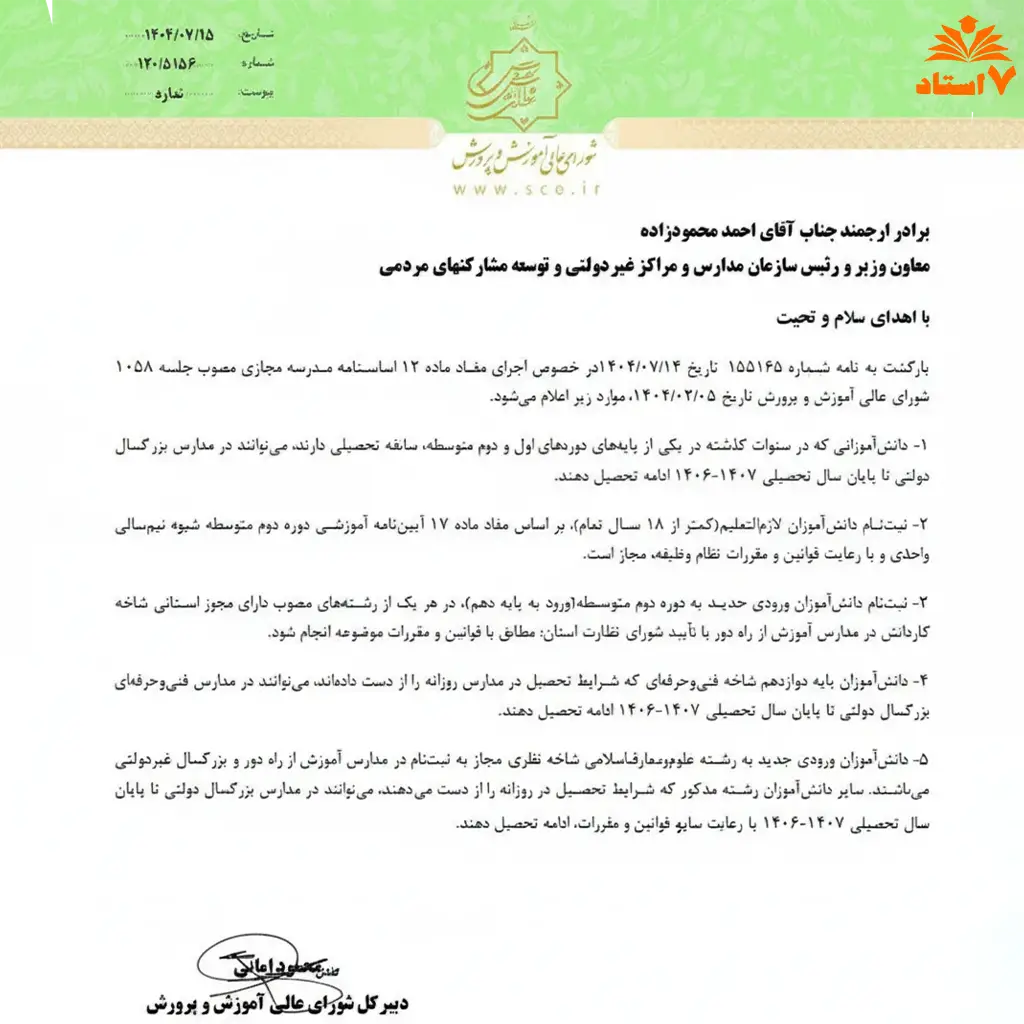 اطلاعیه رسمی ثبت‌نام مدارس بزرگسالان از سوی شورای عالی آموزش و پرورش