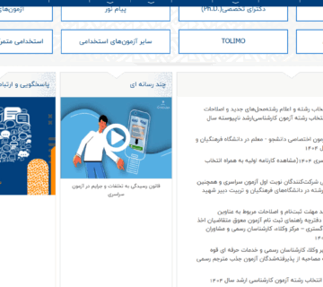 انتشار کلید اولیه نوبت اول کنکور ۱۴۰۴ در ۱۵ اردیبهشت7 استاداردیبهشت 13, 1404نوبت اول آزمون سراسری سال ۱۴۰۴ برای پذیرش در رشتههای با آزمون در دورههای روزانه، نوبت ... ادامه مطلب